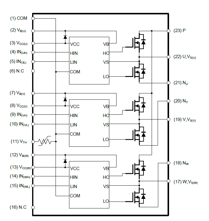 IPM23_MOS新系列產(chǎn)品內部驅動(dòng)集成了自舉電路、防直通互鎖、欠壓保護與溫度輸出功能,優(yōu)化的高壓柵極驅動(dòng)配合內集成快速恢復二極管的MOSFET,極大地改善產(chǎn)品工作EMI與開(kāi)關(guān)損耗。產(chǎn)品封裝采用框架全塑封結構,模塊體積小、功能齊全、功率密度高、熱阻小,絕緣等級能滿(mǎn)足各種裝配場(chǎng)景需求。